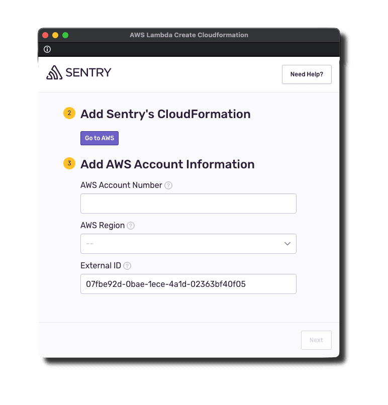 Connect Sentry to your AWS account to automatically add Sentry error and performance monitoring to your Node/Python Lambda functions.
