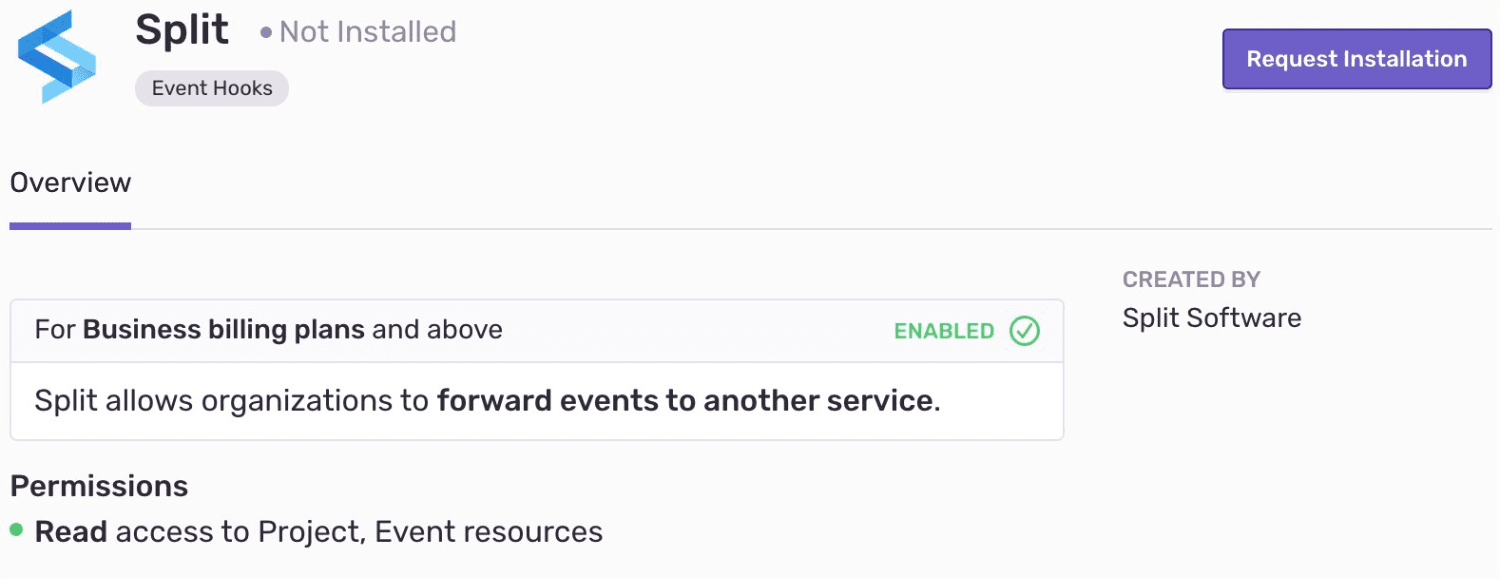 Sentry owner, manager, or admin permissions are required to install this integration. The Split integration is available only for organizations on the Business and Enterprise plans.