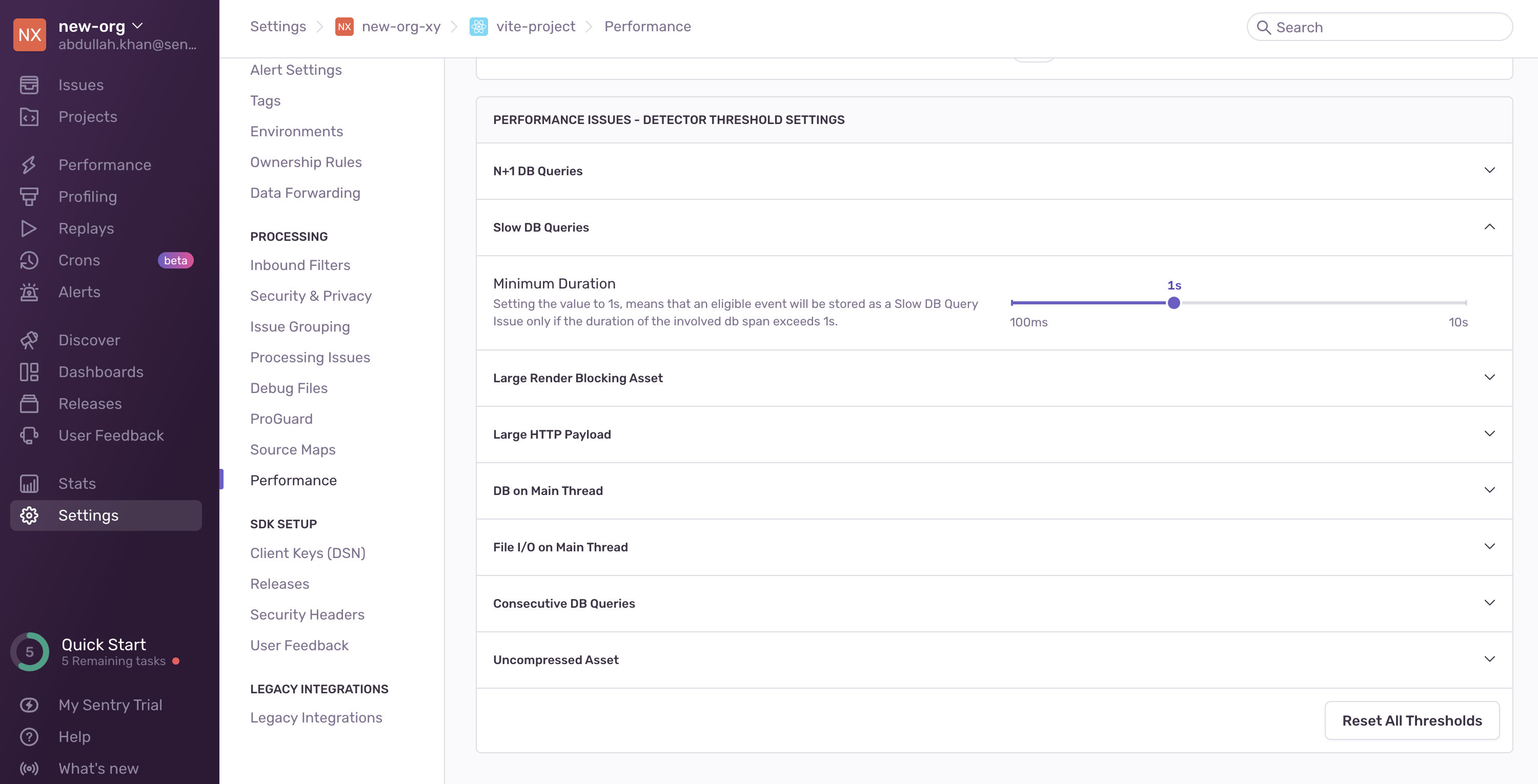 Slow DB Query detector threshold settings
